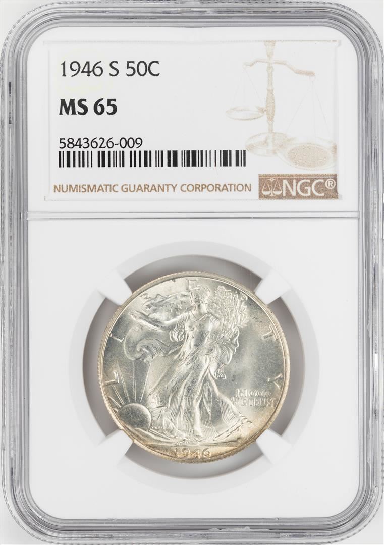 One 1946-S Walking Liberty Half Dollar Coin NGC MS65. NGC Certified.