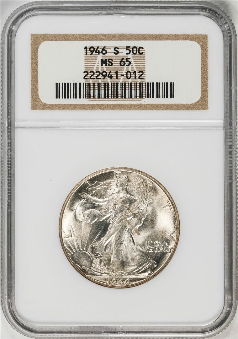 One 1946-S Walking Liberty Half Dollar Coin NGC MS65. NGC Certified.