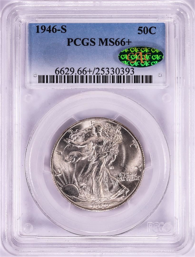 One 1946-S Walking Liberty Half Dollar Coin PCGS MS66+ CAC. PCGS Graded.