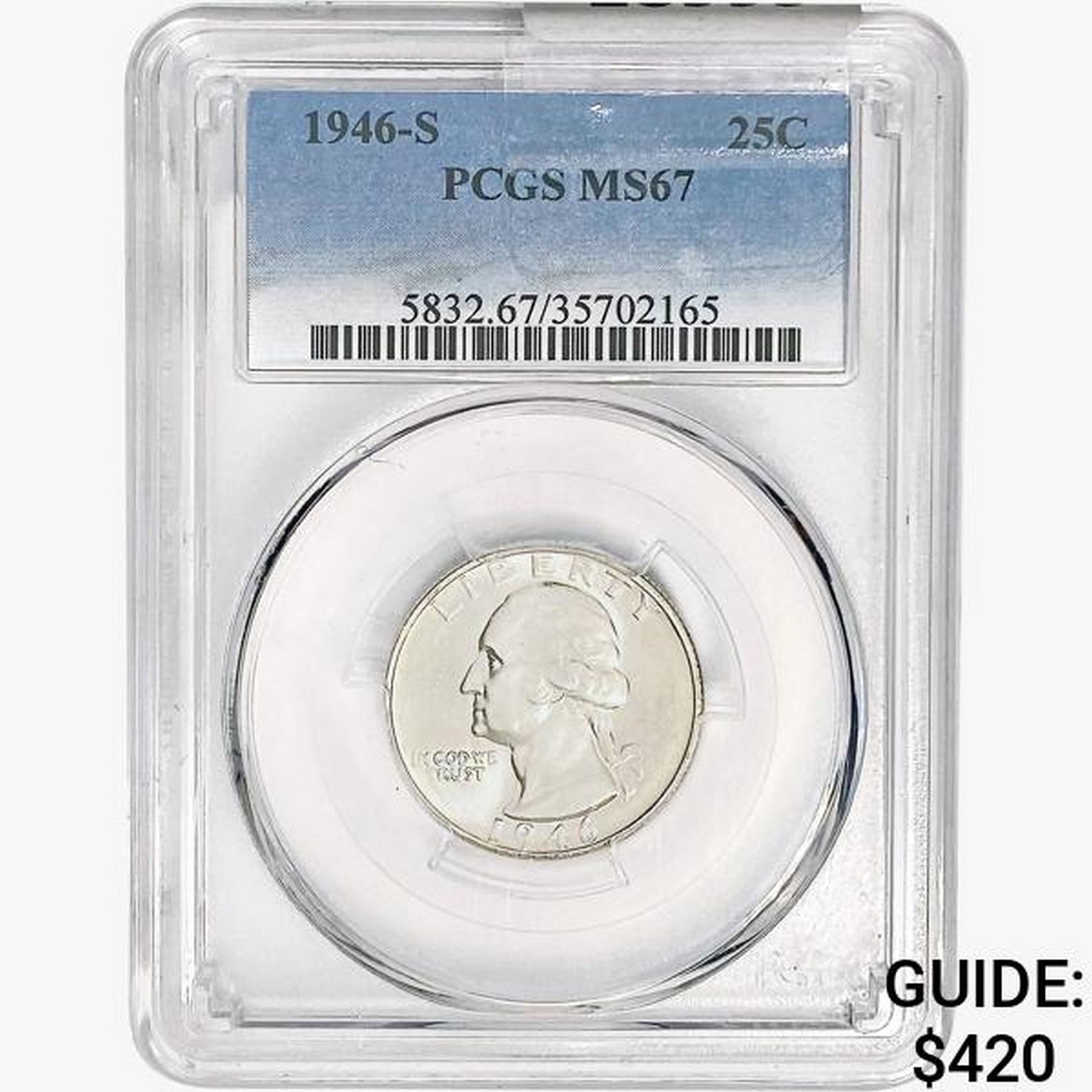 1946-S Washington Silver Quarter PCGS MS67