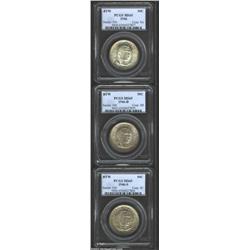 1946 SET Booker T. Washington PDS Set MS65 PCGS. The P-mint example displays golden-gray tinting with splashes of russet toning here and there. The Denver Mint coin is more extensively toned in lavender-gray hues with a few streaks of pale russet color. Finally, the S-mint Gem is richly toned in dappled reddish-russet patina. All three Commems are fully frosted with undeniable originality. 3 coins Important notice: We expect to be auctioning lots at the rate of 200-250 per hour. Sometimes eBay Premier live bid software cannot keep up with that pace, so we strongly recommend that you place a realistic proxy bid now as insurance to avoid disappointment. Also please note that all Heritage/CAA lots purchased through eBay Premier carry a 20% Buyer's Premium. Please make sure you read the Terms and Conditions.
