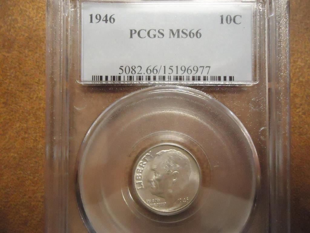 1946 SILVER ROOSEVELT DIME PCGS MS66