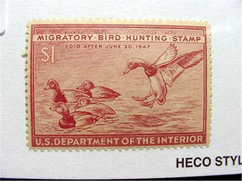 1946 Scott # RW 13 Federal Duck Hunting Stamp (Redheads) Mint Hinged