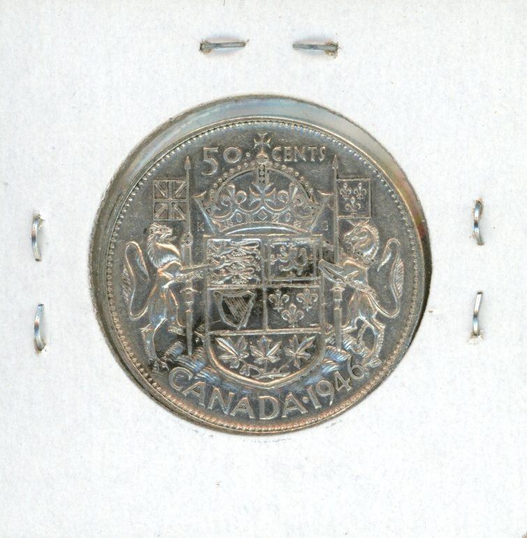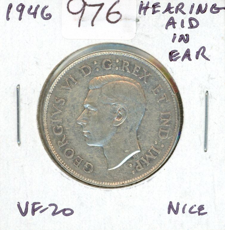 1946 Silver 50 cents. Hearing Aid in King’s Ear from Die Clash. VF-20. Scarce.