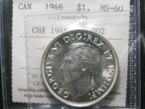1946 Small Water lines variety $1 ICCS MS60+, white and lustrous. A tough coin to find in minstate condition.