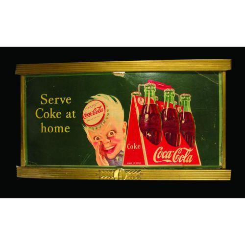 1946 Sprite Boy Cardboard Sign in original frame. Paper loss, tears and wrinkles otherwise fair condition. 61 1/2 X 33 inches overall.