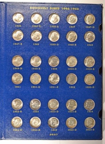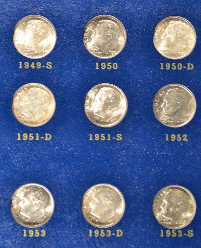1946 THRU 1964 PLUS EXTRA COINS, ROOSEVELT DIME SET, GEM MS-65 COINS