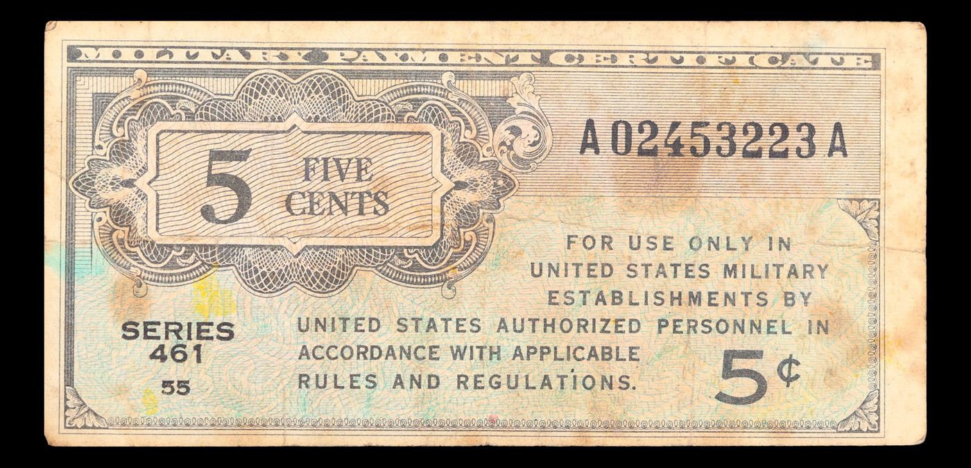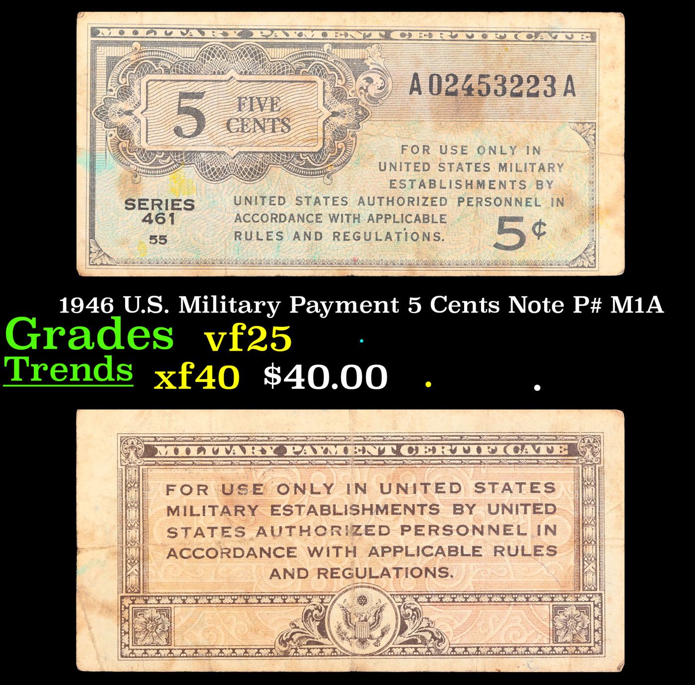 1946 U.S. Military Payment 5 Cents Note P# M1A Grades vf+.