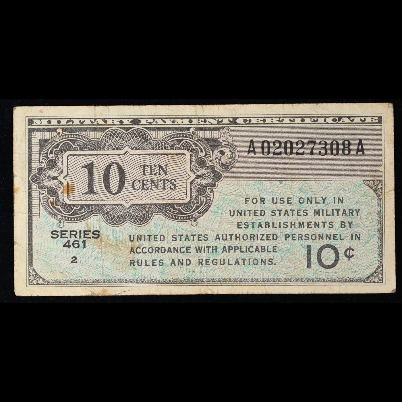 1946 U.S. Military Payment Certificate MPC 10 Cent Note P# M2A Grades vf++. Allied Military Currency ("AMC") was a form of currency issued by the Allied powers during World War II, to be issued to troops entering liberated or newly occupied countries. Historically, soldiers serving overseas had been paid in local currency rather than in their "home" currency. Most cash drawn by soldiers would go directly into the local economy, and in a damaged economy the effects of a hard currency such as the dollar circulating freely alongside weaker local currencies could be severely problematic, risking severe inflation.