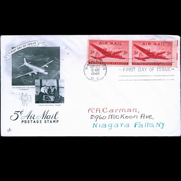 1946 US First Day Airmail Pair Postal Cover (STM-002125)
