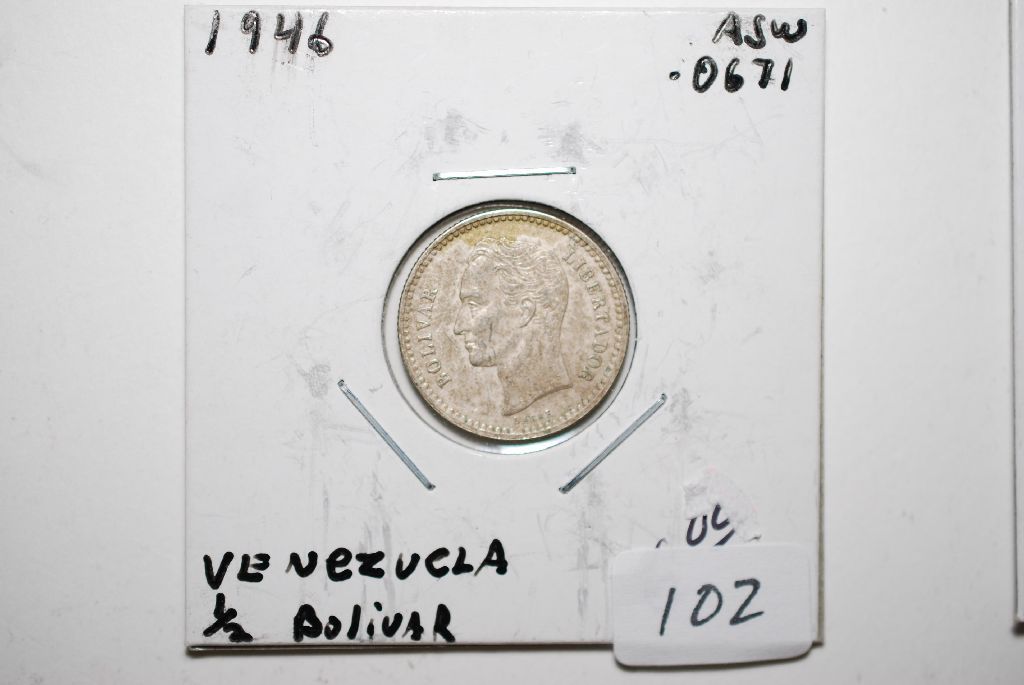 1946 Venezuela 1/2 Bolivar Foreign Coin; .0671 ASW; EST. $10-15