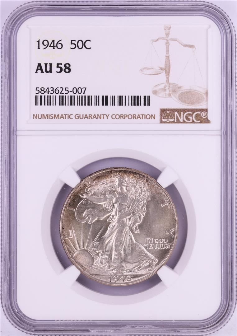 One 1946 Walking Liberty Half Dollar Coin NGC AU58. NGC Certified.