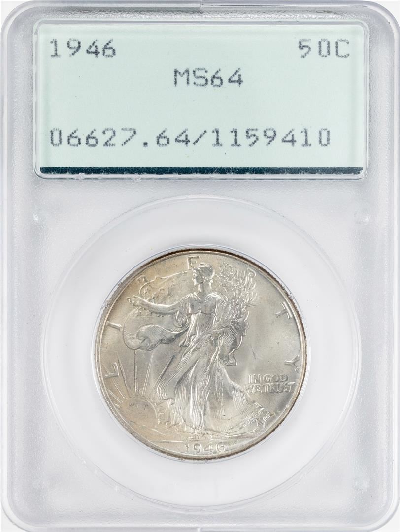 1946 Walking Liberty Half Dollar Coin PCGS MS64 Old Green Rattler
