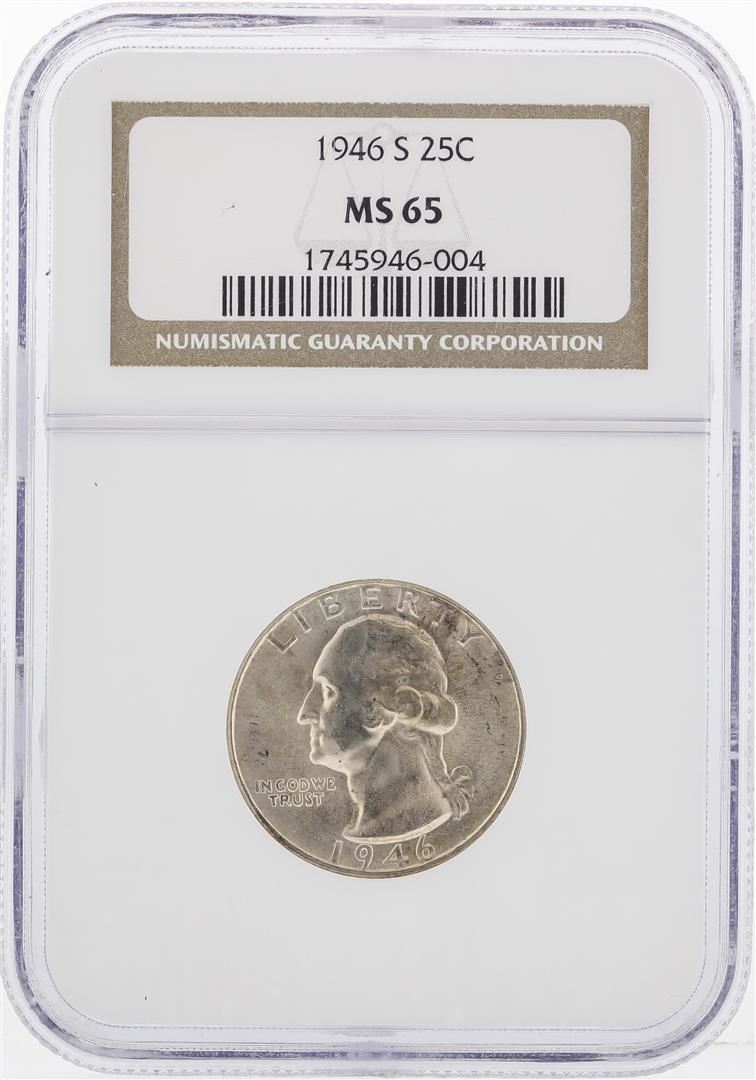 One 1946 Washington Silver Quarter Coin NGC MS65. NGC Certified.