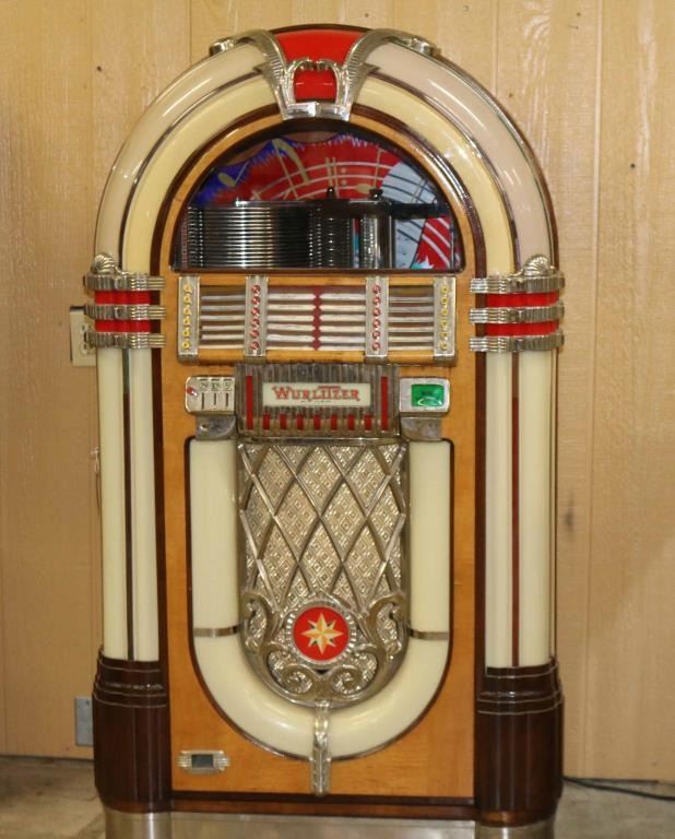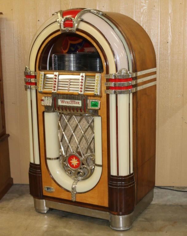 This fully restored iconic original Wurlitzer 1015 jukebox utilizes the coin operated 24-play 78 rpm multi-selector phonograph. Wurlitzer only produced the model 1015 from 1946-1947 with the later 1950s versions to play 45rpm. Highly collectible, this jukebox is one of the increasingly rare Wurlitzers that were originally designed to play 78rpm records. Measuring 60"h x 32"w x 24"d this piece of America features the intricate design and quality construction synonymous with classic jukeboxes. Including a rich walnut cabinet, an extensive curved light facade, chrome filigree accents throughout, illuminated color-changing pilasters, 8 bubble tubes, shiny chrome and domed top, it is reflective of the positive, uplifted attitude of the post-war nation. The extensive design continues to the interior which is lined with walnut, cloth, chrome and aluminum. Buyer is responsible for shipping but seller may be able to assist in arranging shipping