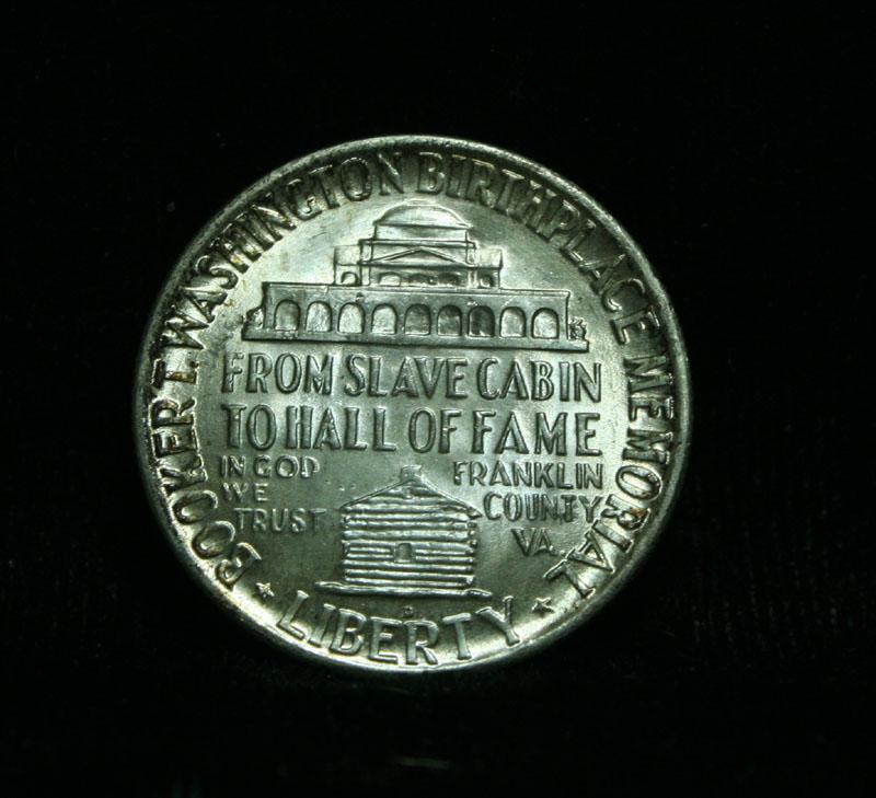 Blazing Luster highlights this great example. Some nice color on the reverse giving it very nice eye appeal. When examining a Booker T. Washington commemorative look for wear on the high points, on the obverse that is Mr. Washington's right Cheek (from his perspective), and on the reverse the arches on the top building. The Wholesale Greysheet lists ms64 at $35. Estimated Value $40
