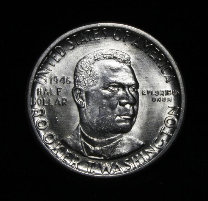Blazing Luster highlight this great example. The Denver issue in the 1946 PDS set is the difficult one of the three and carries a 50% premium over the P and S. When examining a Booker T. Washington commemorative look for wear on the high points, on the obverse that is Mr. Washington's right Cheek (from his perspective), and on the reverse the arches on the top building. Coin World's Coin Values lists ms65 at $85 and ms66 at $225. The Wholesale Greysheet lists ms65 at $75 and ms66 at $150. Estimated Value $100