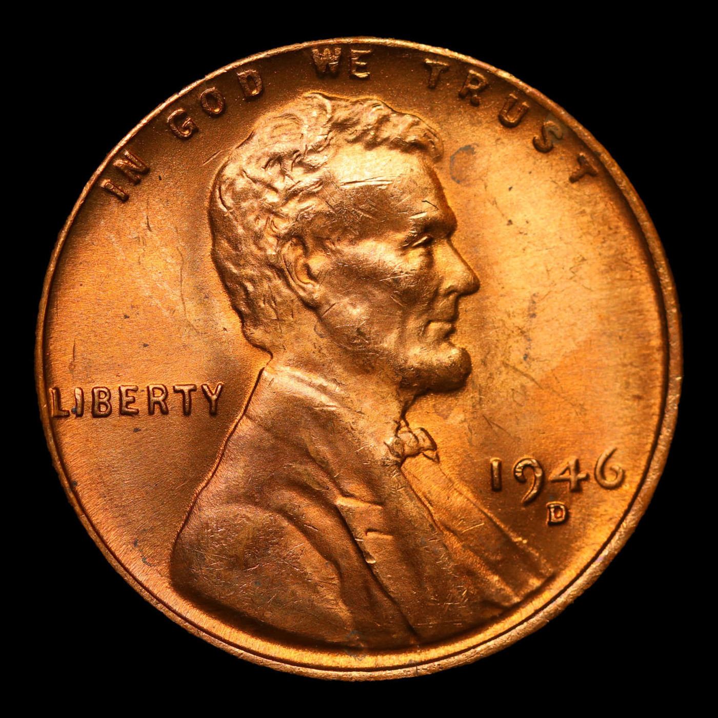 1946-d Lincoln Cent 1c Grades Choice+ Unc RD.