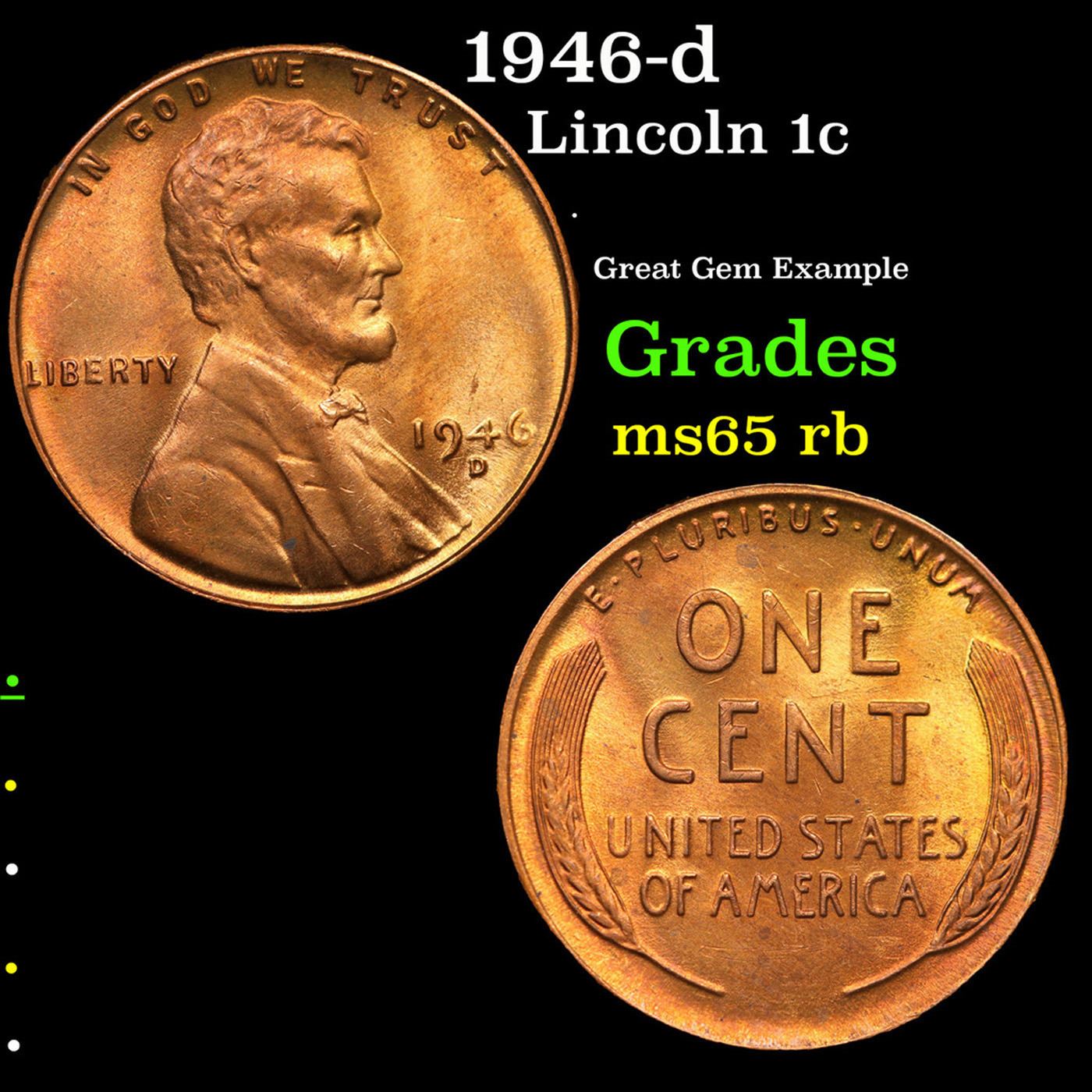 1946-d Lincoln Cent 1c Grades GEM Unc RB.