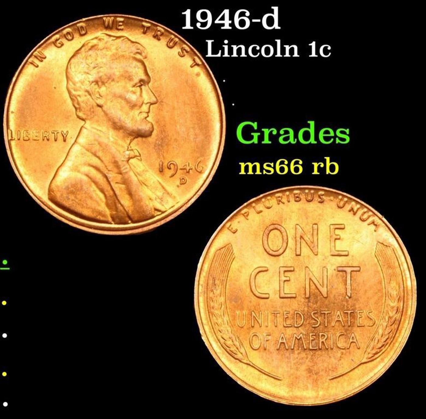 1946-d Lincoln Cent 1c Grades GEM+ Unc RB.