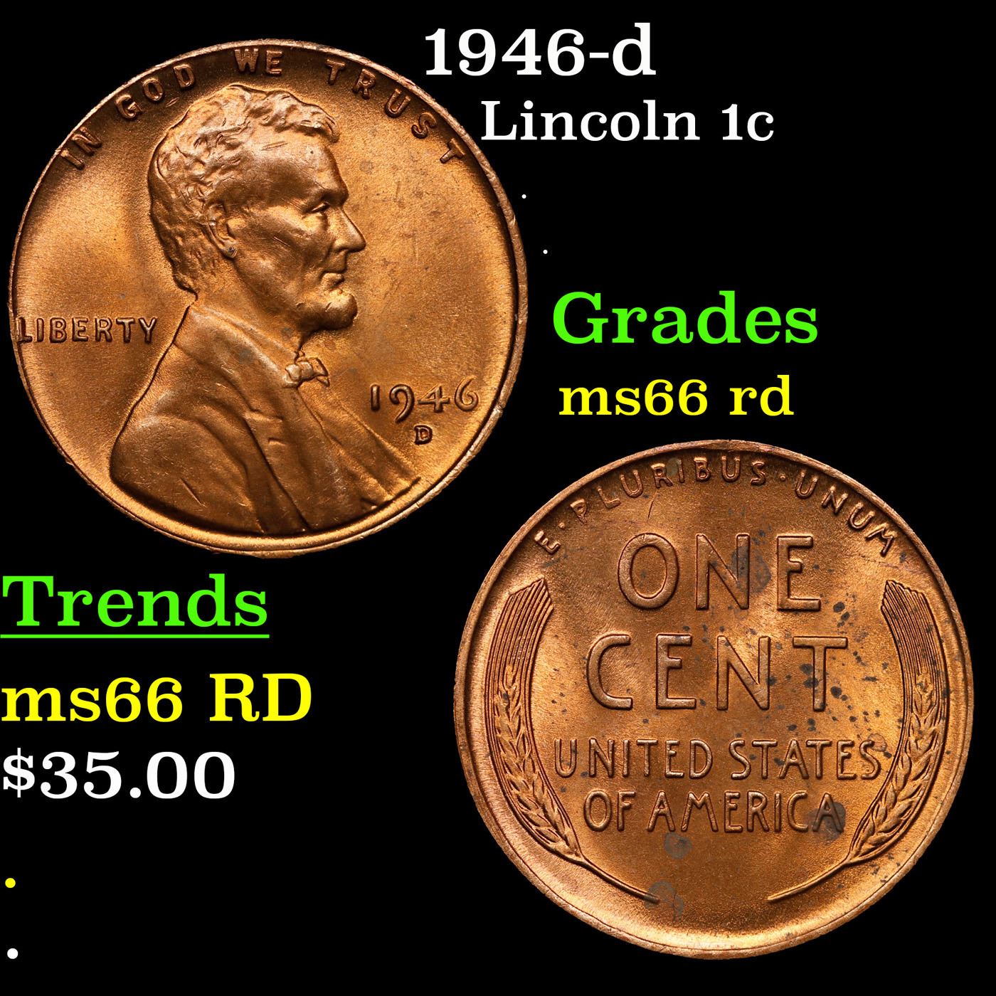 1946-d Lincoln Cent 1c Grades GEM+ Unc RD.