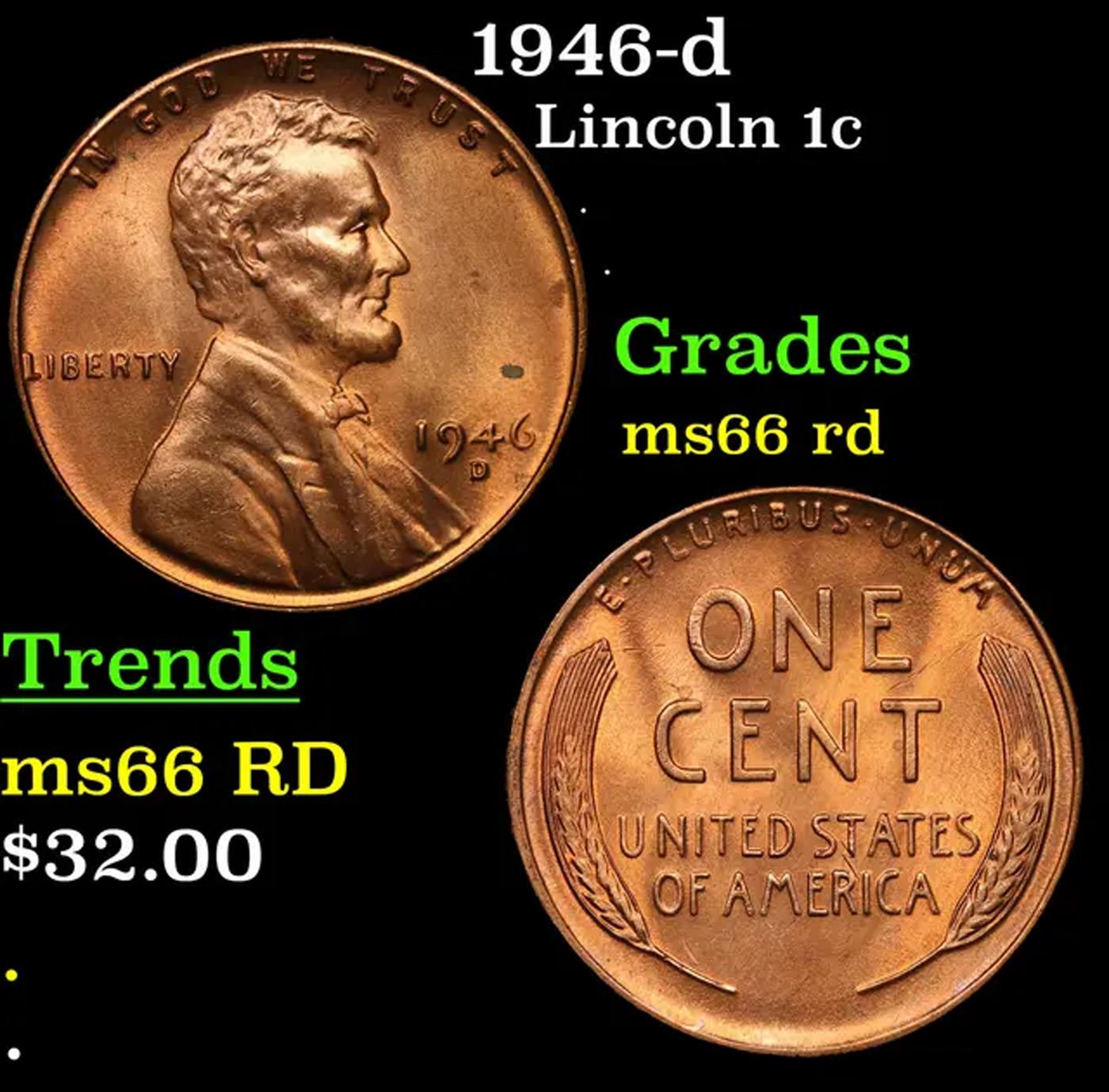1946-d Lincoln Cent 1c Grades GEM+ Unc RD.