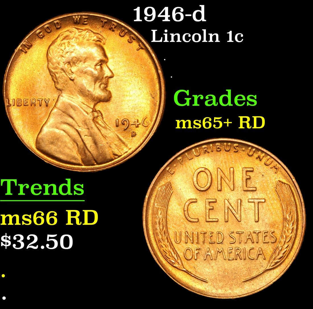 1946-d . . Lincoln Cent 1c Grades Gem+ Unc RD.