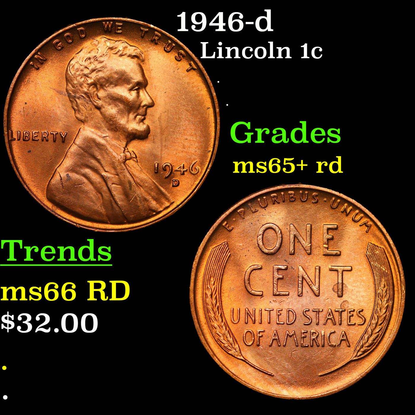 1946-d Lincoln Cent 1c Grades Gem+ Unc RD.