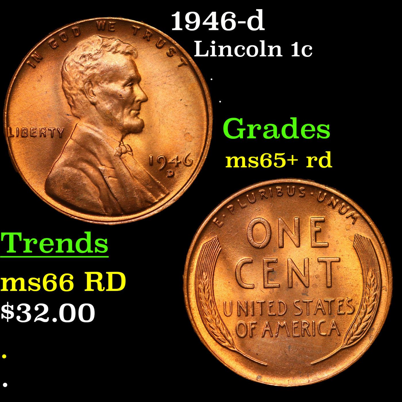 1946-d Lincoln Cent 1c Grades Gem+ Unc RD.