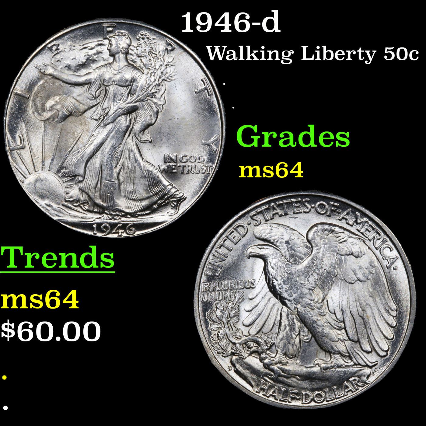 1946-d Walking Liberty Half Dollar 50c Grades Choice Unc.