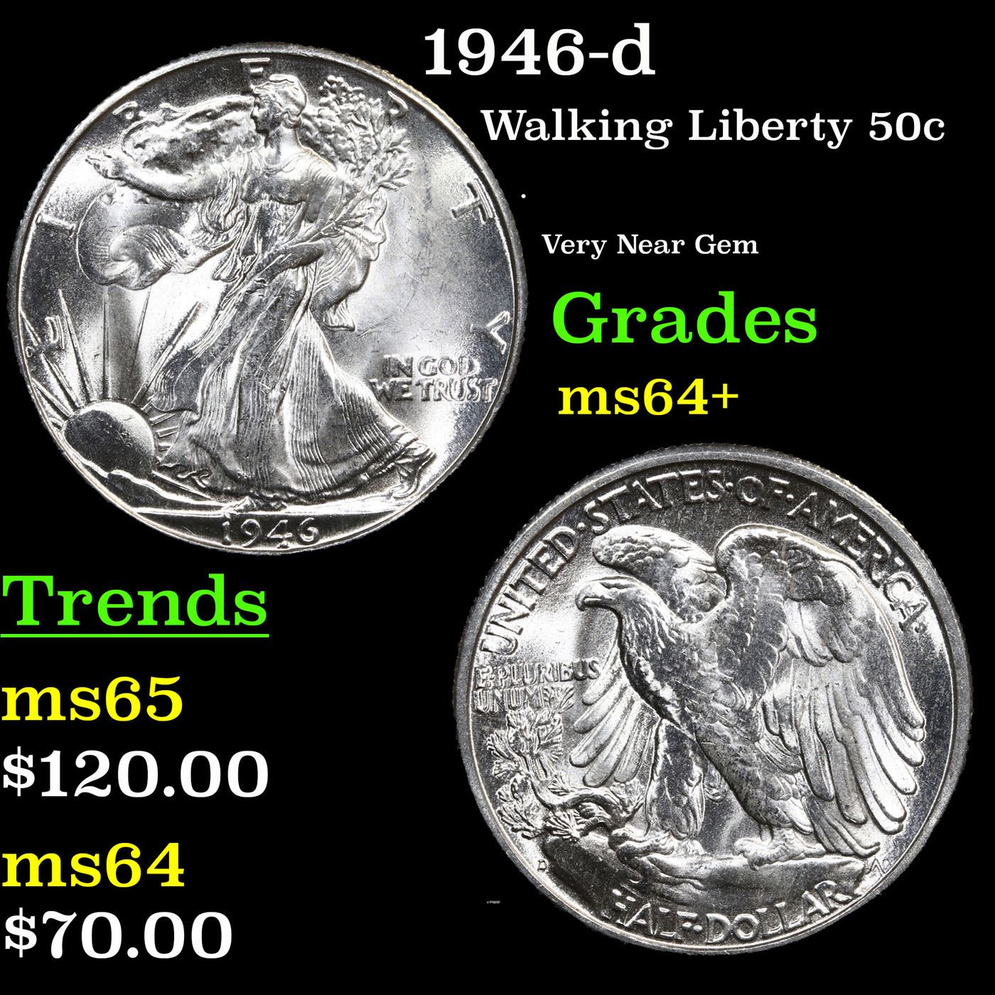 1946-d Walking Liberty Half Dollar 50c Grades Choice+ Unc.