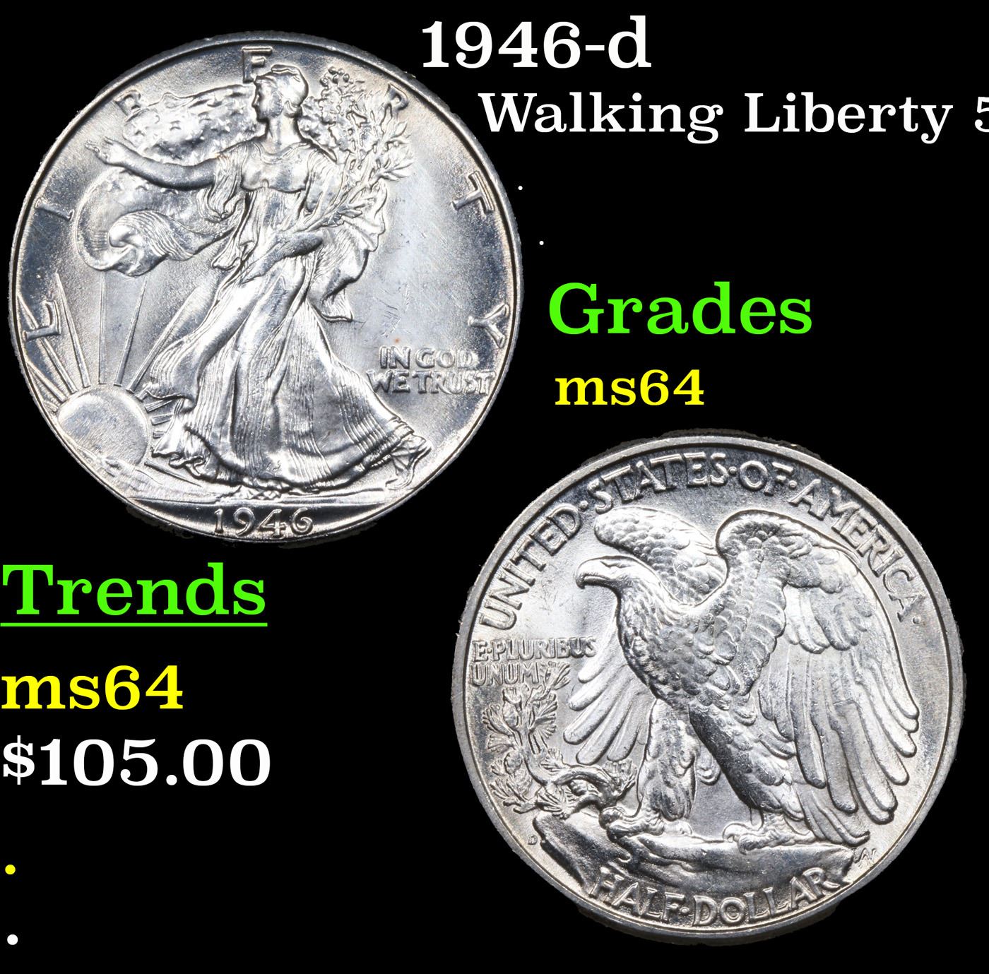 1946-d Walking Liberty Half Dollar 50c Grades Choice Unc.