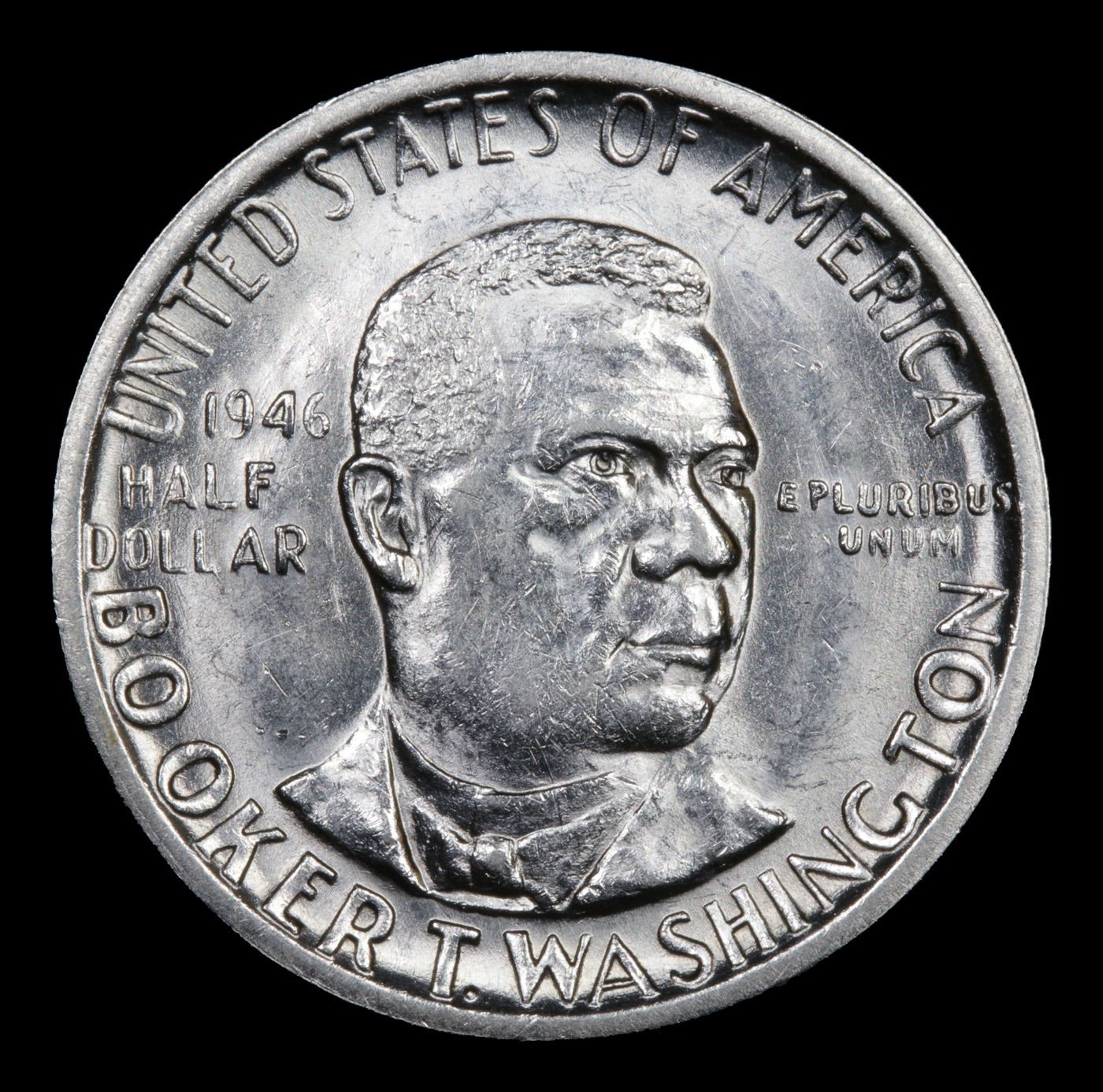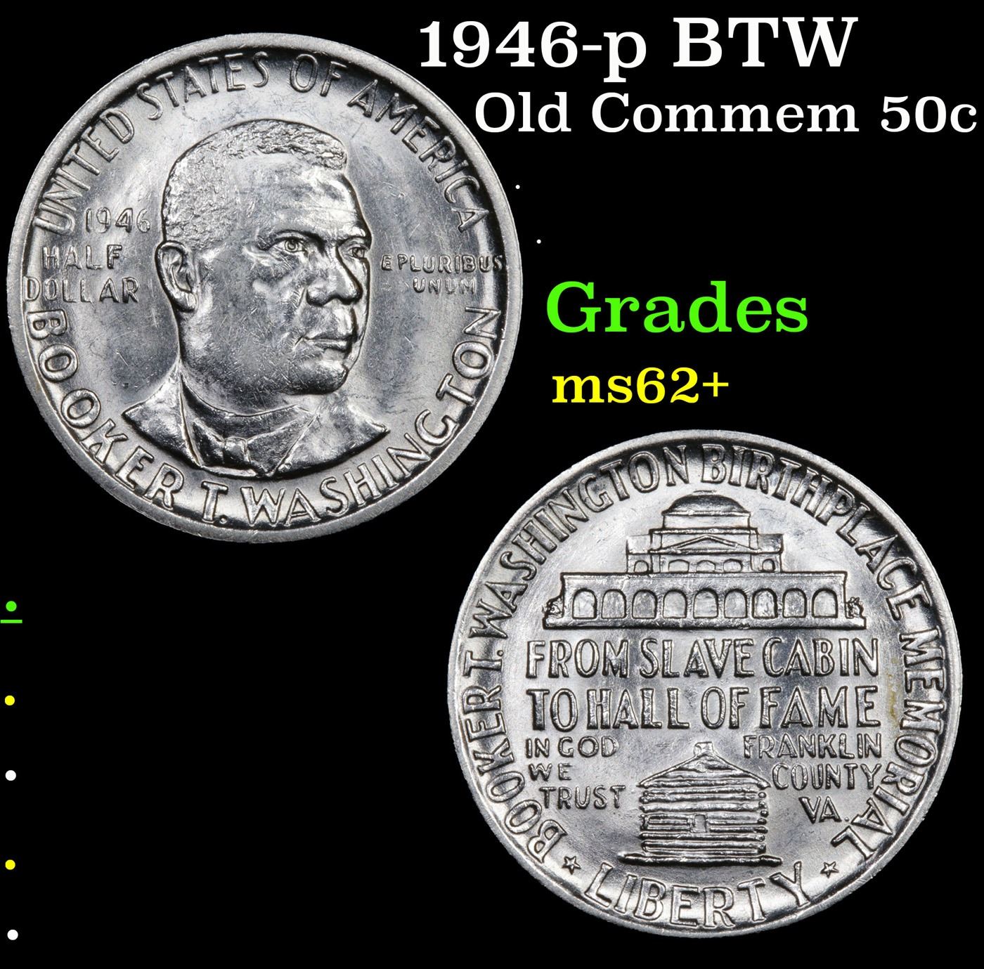 1946-p BTW Old Commem Half Dollar 50c Grades Select Unc. When examining a Booker T. Washington commemorative look for wear on the high points, on the obverse that is Mr. Washington's right Cheek (from his perspective), and on the reverse the arches on the top building.