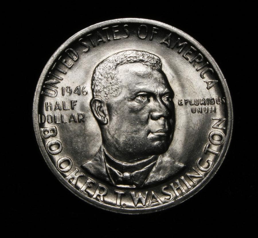 Blazing Luster highlight this great example. When examining a Booker T. Washington commemorative look for wear on the high points, on the obverse that is Mr. Washington's right Cheek (from his perspective), and on the reverse the arches on the top building. Coin World's Coin Values lists ms65 at $85. The Wholesale Greysheet lists ms65 at $75. Estimated Value $75