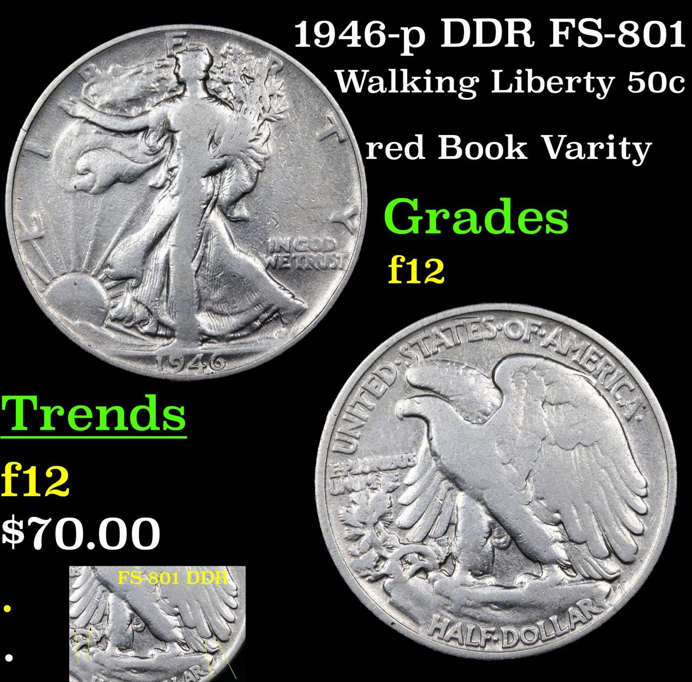 1946-p DDR FS-801 Walking Liberty Half Dollar 50c Grades f, fine