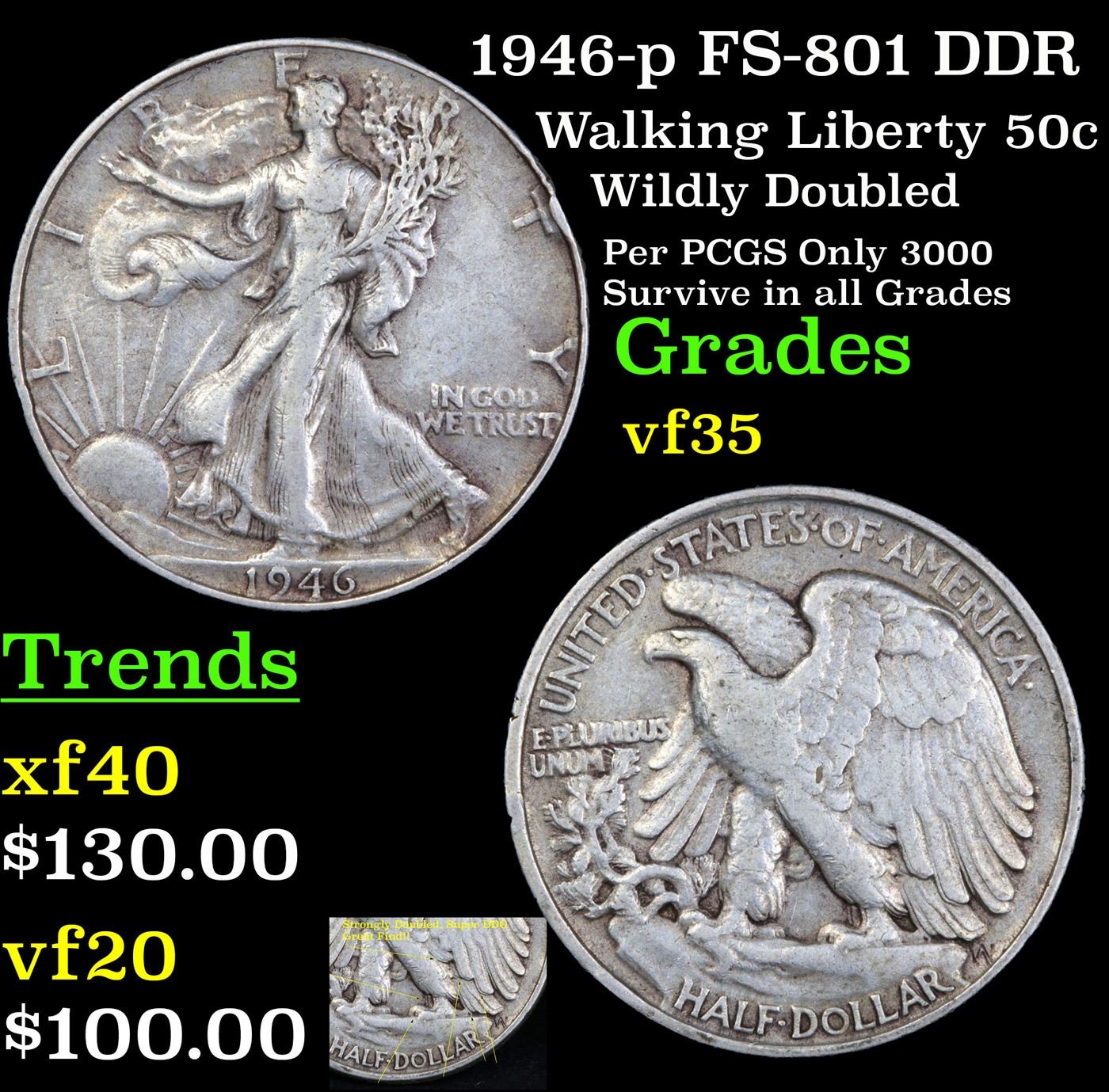1946-p FS-801 DDR Walking Liberty Half Dollar 50c Grades vf++. The 1946 FS-801 is one of the two most popular and dramatic Doubled Die Reverse varieties in the Walking Liberty half dollar series A Corey's Pick