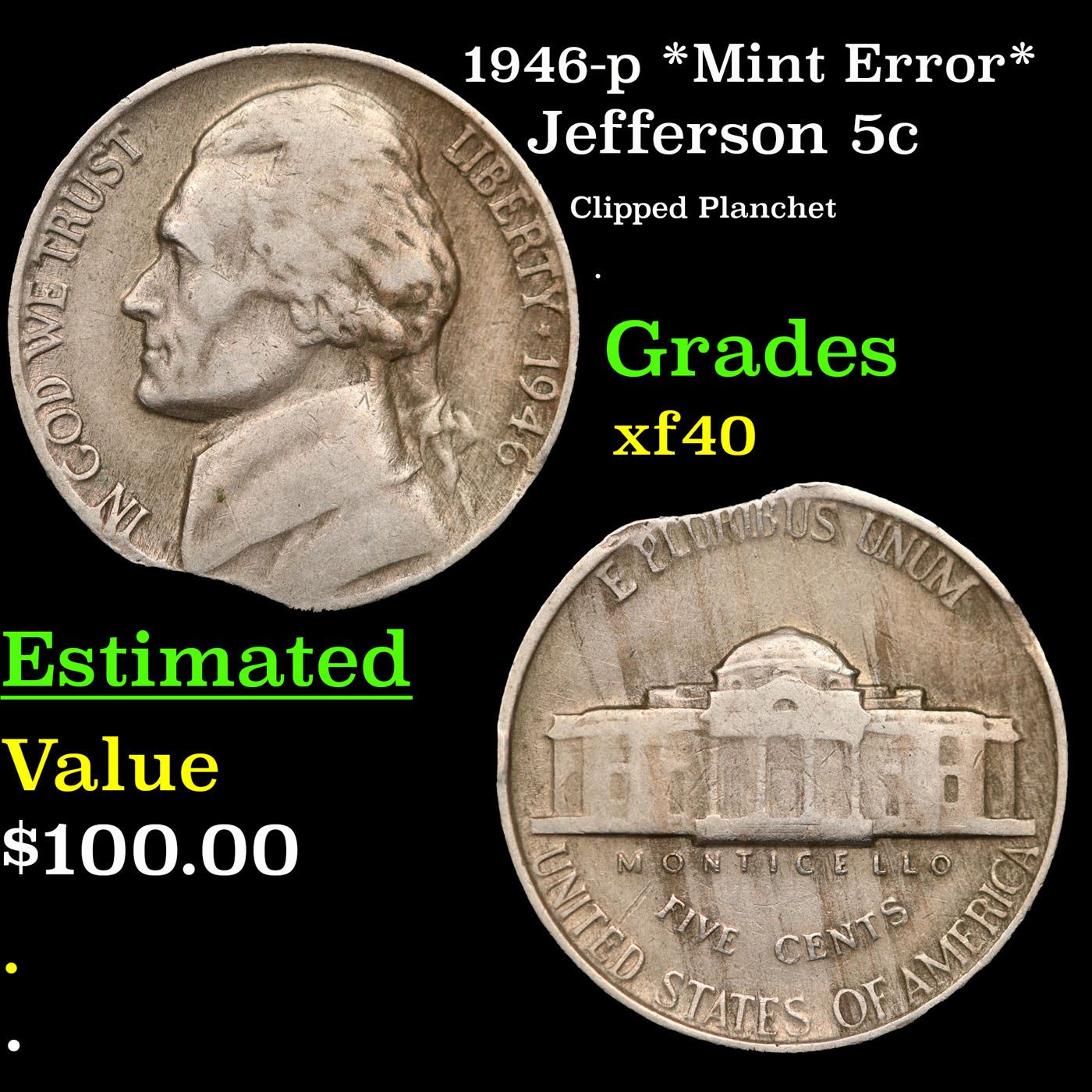 1946-p *Mint Error* Jefferson Nickel 5c Grades xf.