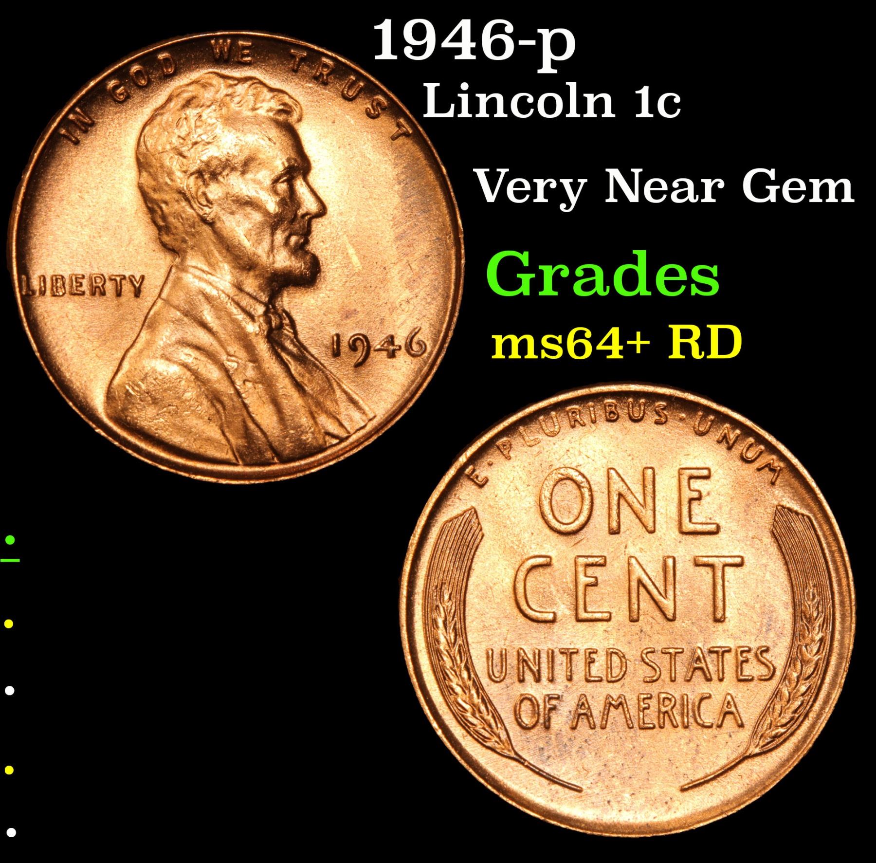 1946-p . Very Near Gem Lincoln Cent 1c Grades Choice+ Unc RD.