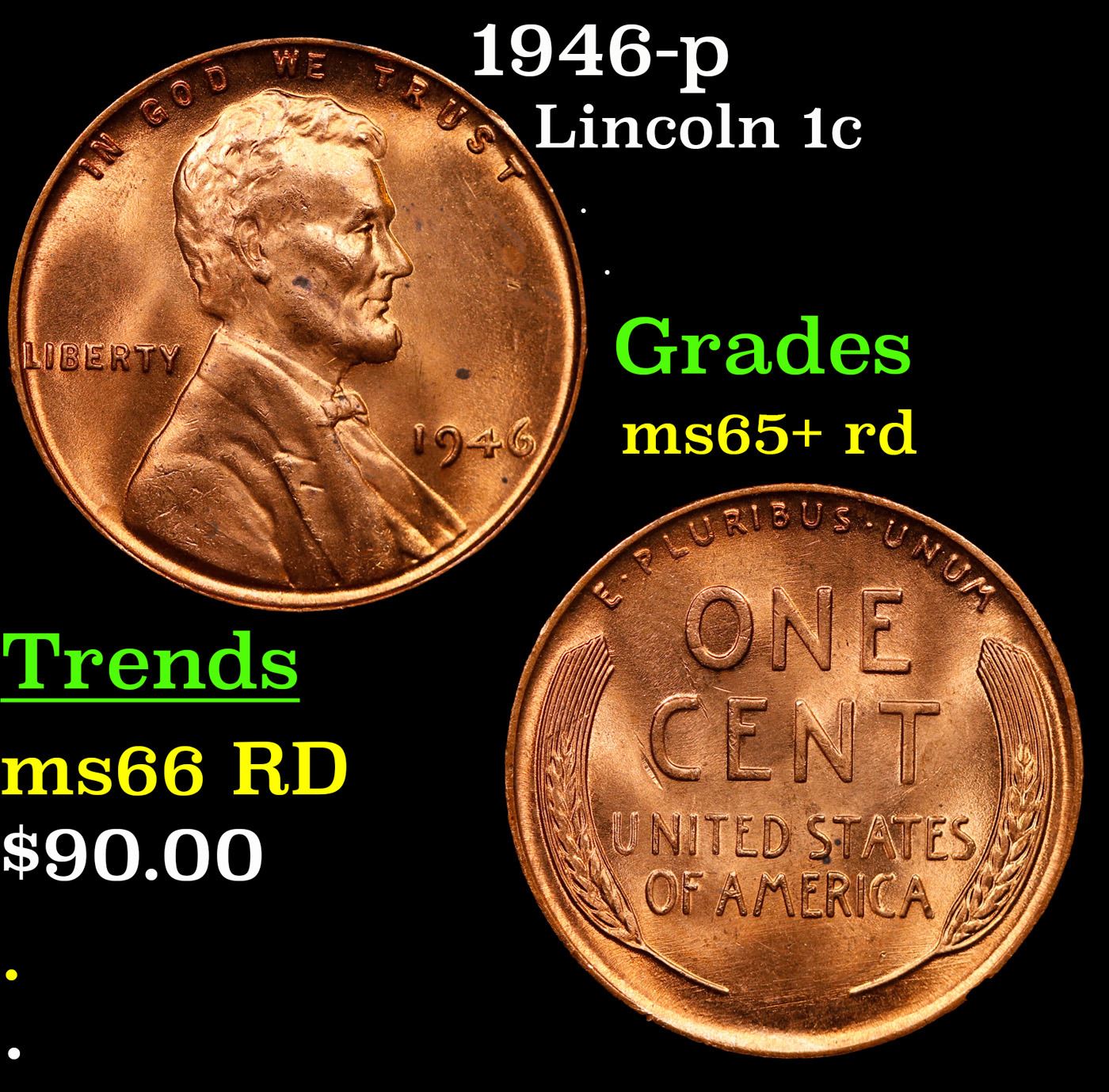 1946-p Lincoln Cent 1c Grades Gem+ Unc RD.
