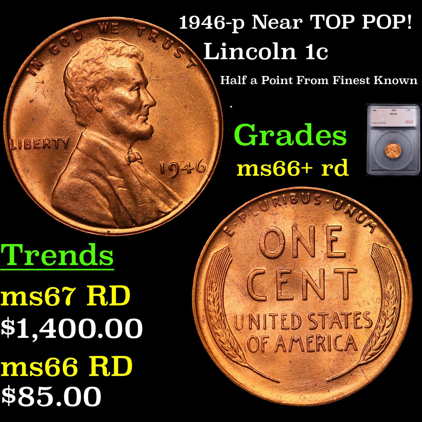 1946-p Near TOP POP! Lincoln Cent 1c Graded ms66+ rd BY SEGS. A Corey's Pick, Bid to Win Coin