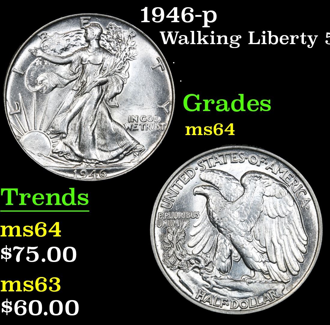 1946-p . . Walking Liberty Half Dollar 50c Grades Choice Unc.