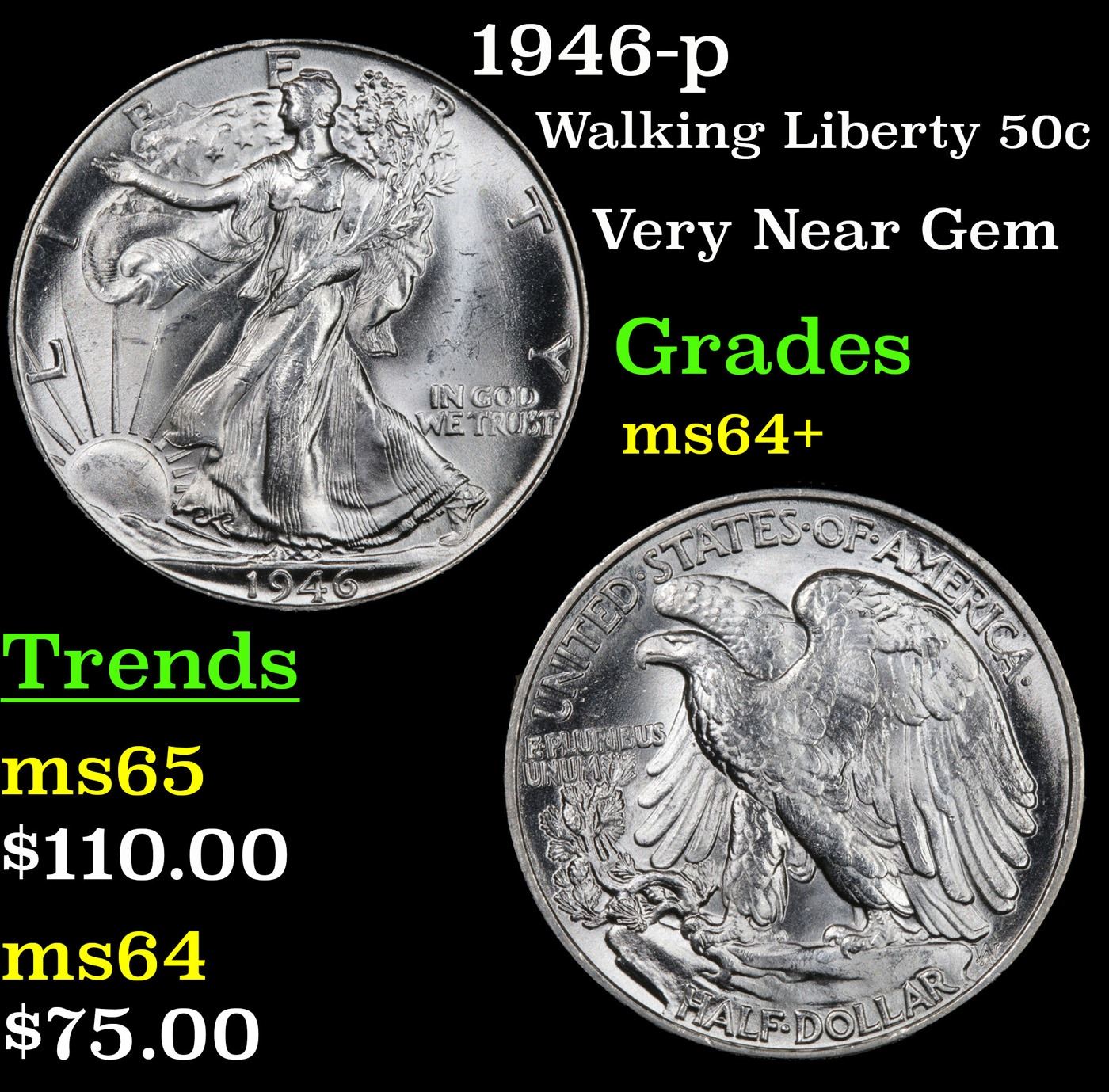 1946-p Walking Liberty Half Dollar 50c Grades Choice+ Unc.