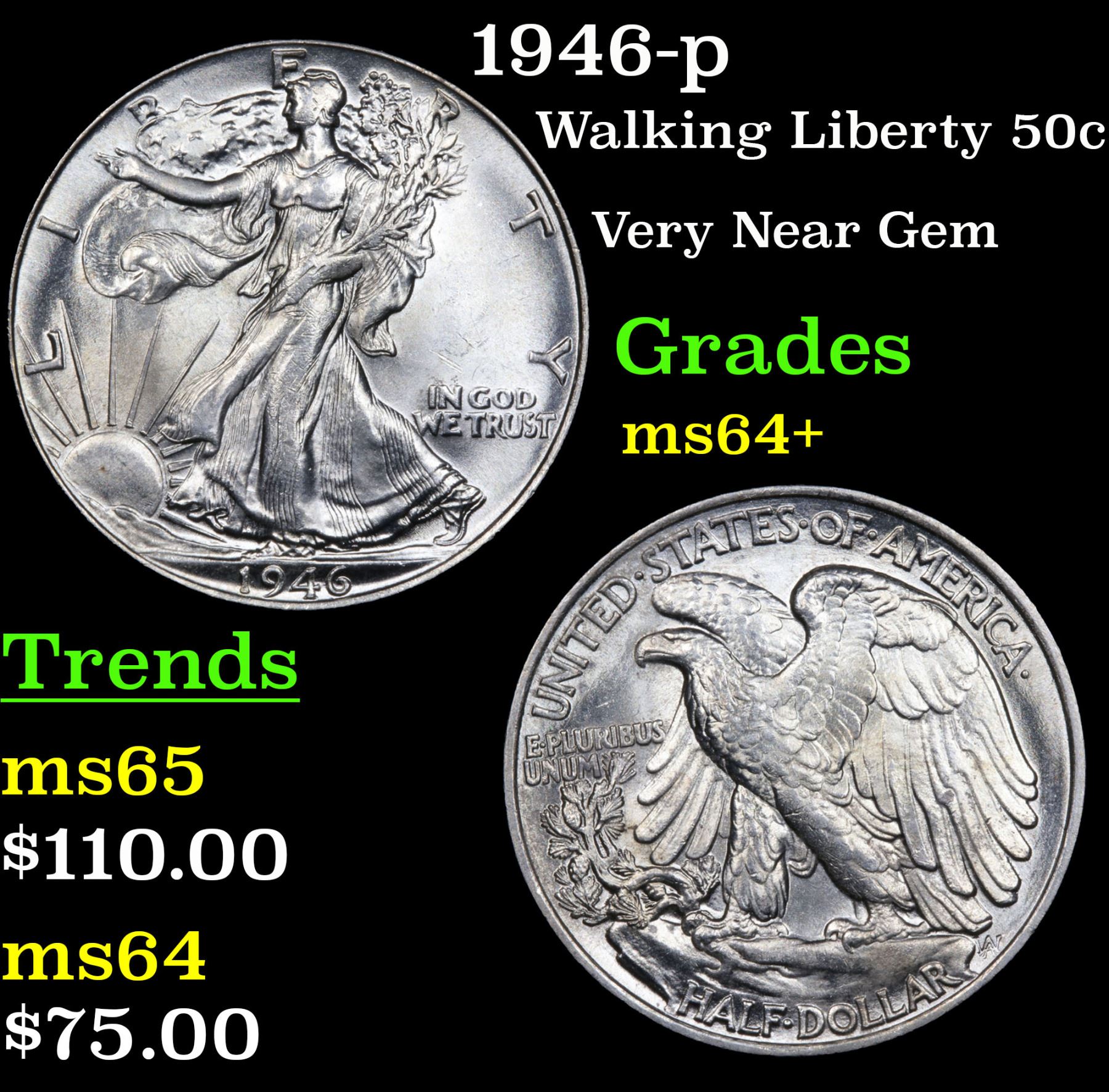 1946-p Walking Liberty Half Dollar 50c Grades Choice+ Unc.