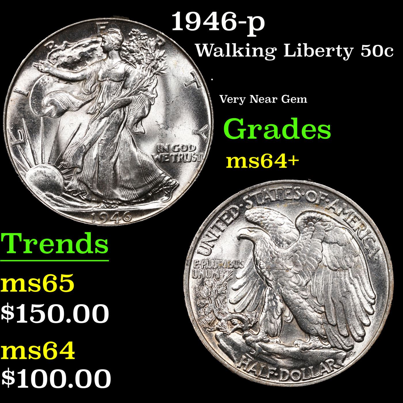 1946-p Walking Liberty Half Dollar 50c Grades Choice+ Unc.
