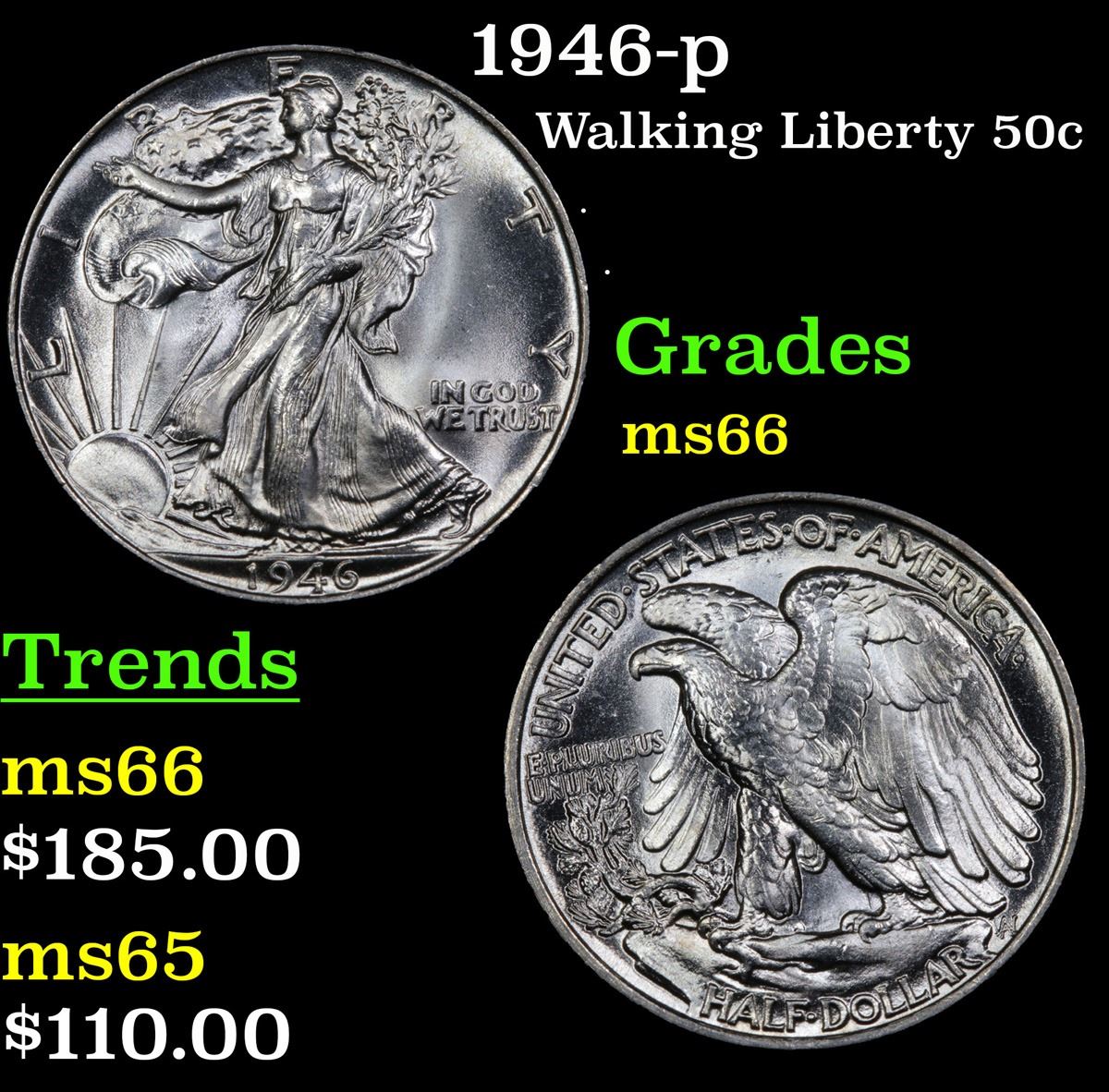 1946-p Walking Liberty Half Dollar 50c Grades GEM+ Unc.