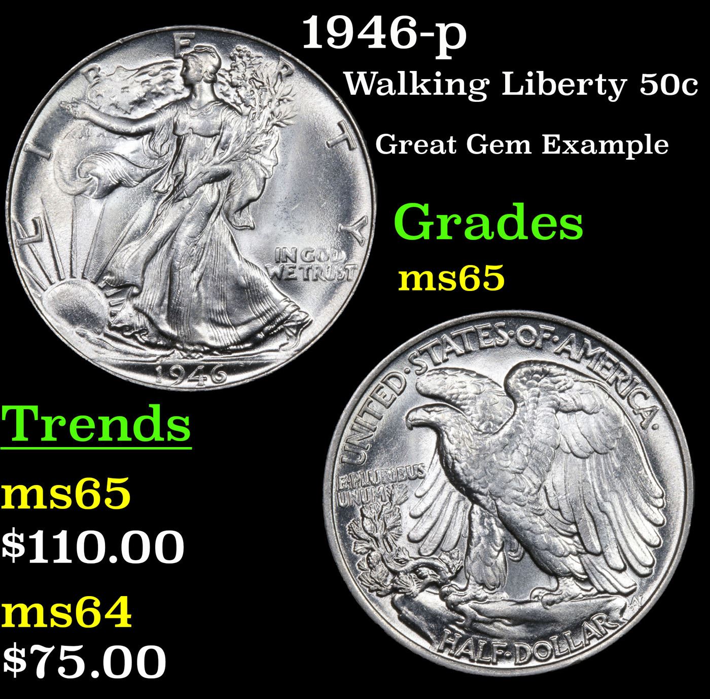 1946-p Walking Liberty Half Dollar 50c Grades GEM Unc.