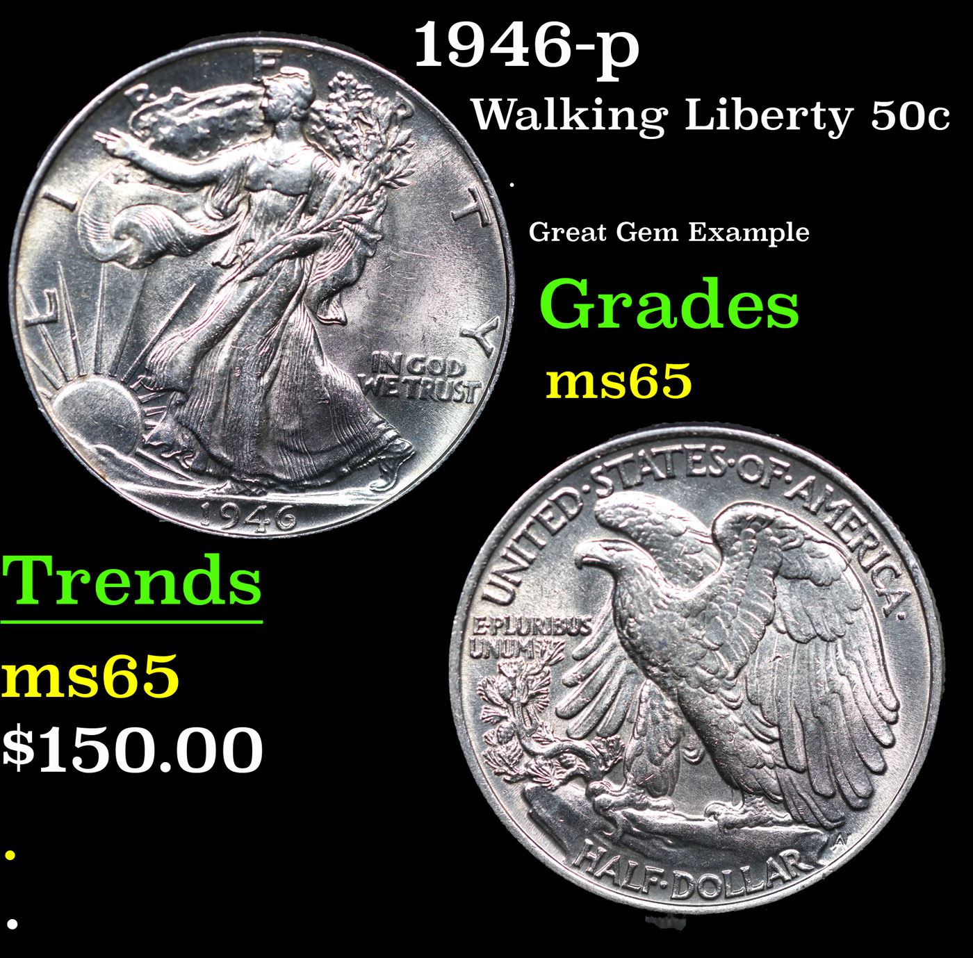1946-p Walking Liberty Half Dollar 50c Grades GEM Unc.