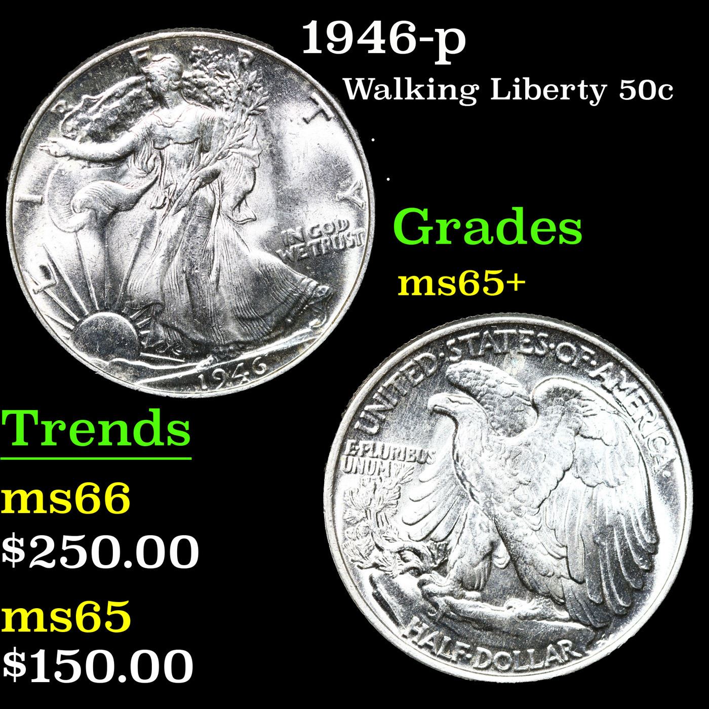 1946-p Walking Liberty Half Dollar 50c Grades GEM+ Unc.