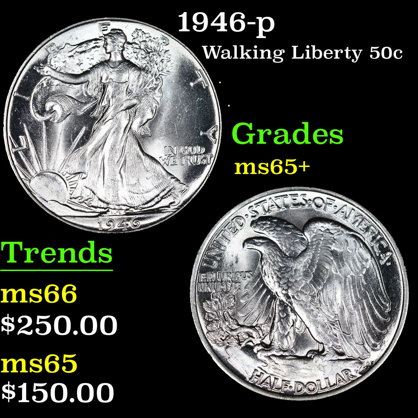 1946-p Walking Liberty Half Dollar 50c Grades GEM+ Unc.
