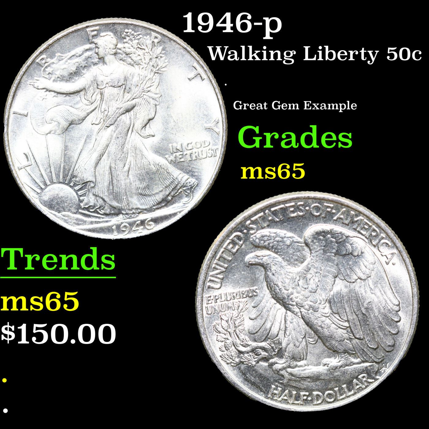 1946-p Walking Liberty Half Dollar 50c Grades GEM Unc.